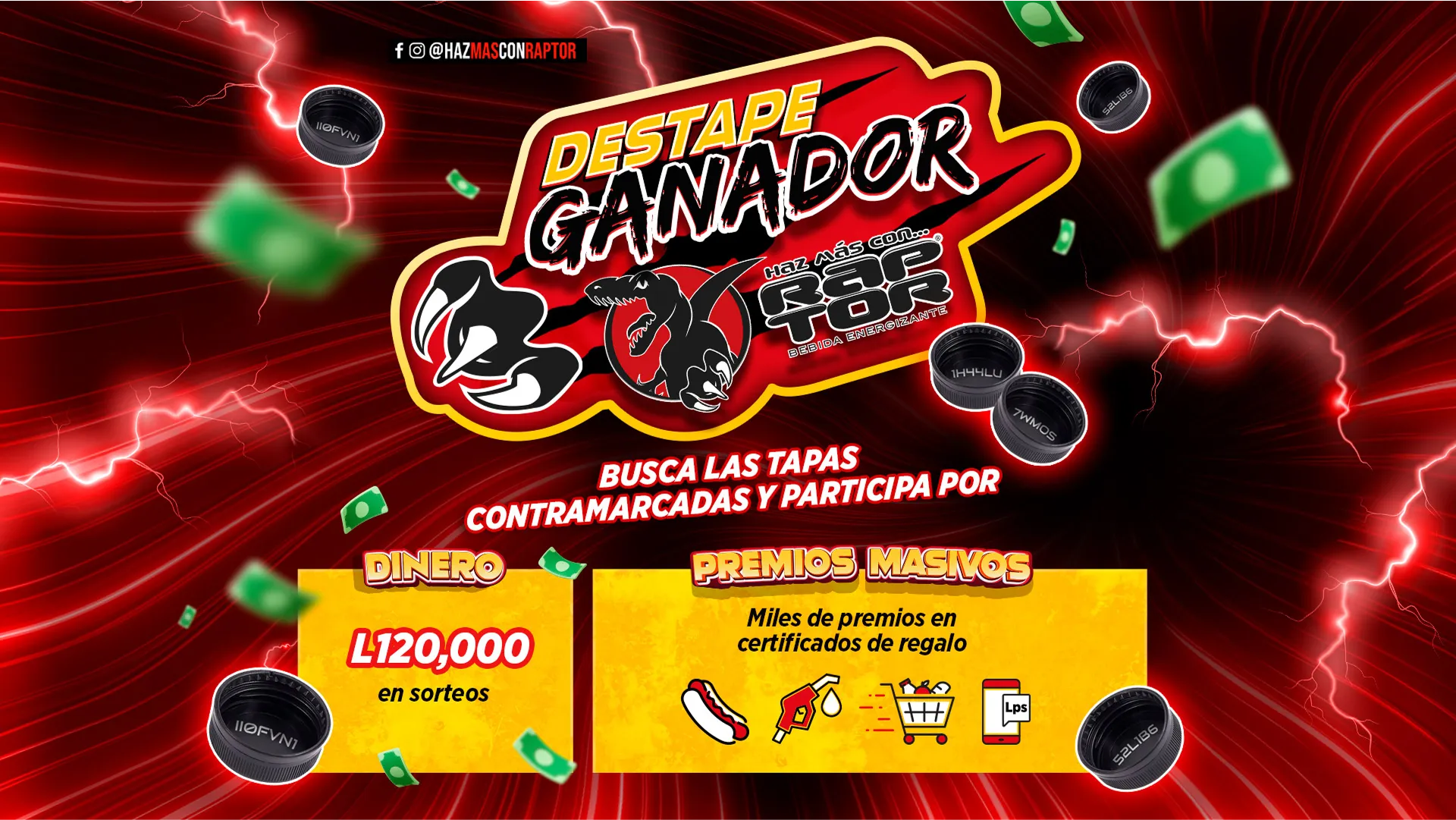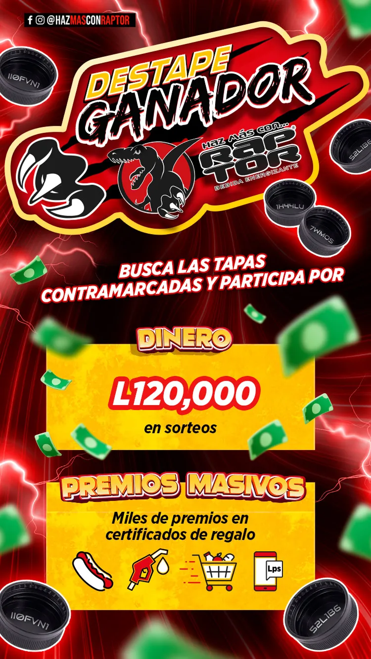 Deberás comprar 6 unidades de producto Raptor (600mL, 500mL o 473mL) y presentar tu factura del establecimiento.
